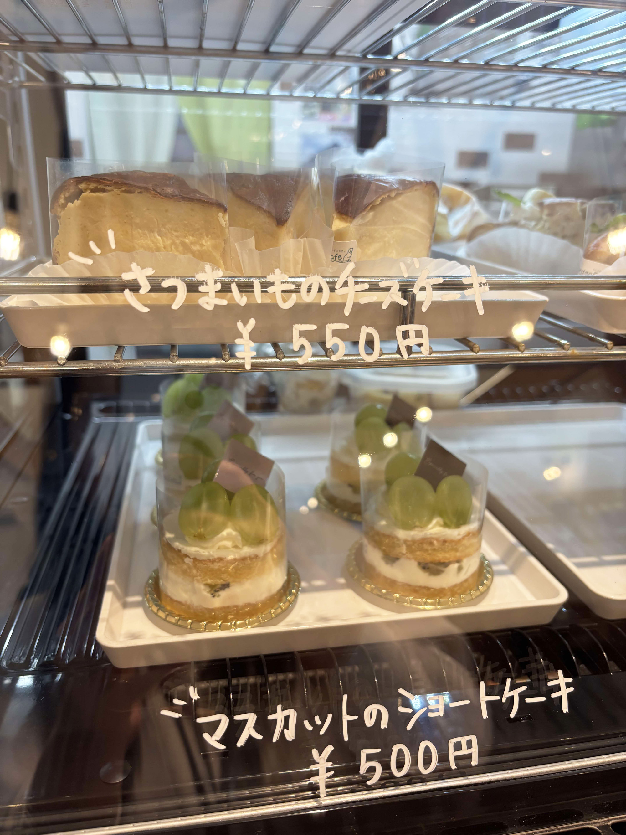 今回いただいた「マスカットのショートケーキ」(500円[税込])は、やさしい甘さの生クリームがたっぷり入っており、甘さと酸味のバランスがちょうどいいマスカットとの相性が抜群です。さらに、ふわふわのスポンジと相まって、見た目より重さを感じないケーキになっています。