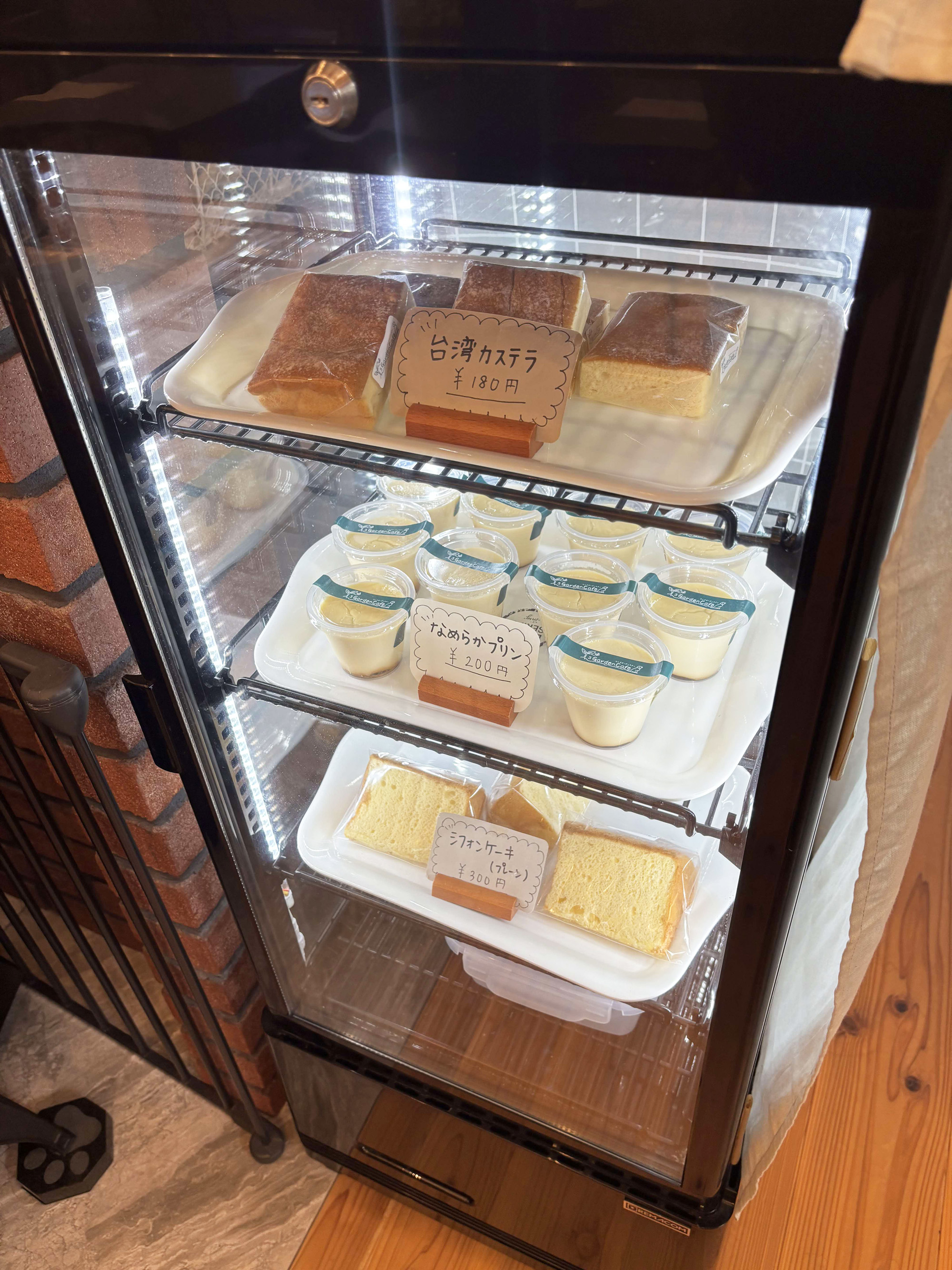 スイーツは、季節のフルーツを使ったショートケーキやタルト、チーズケーキ、プリンといった生菓子から、台湾カステラ、フィナンシェやフロランタンなど焼き菓子、メロンパンやあんバター生フランスパンなど、パンも充実しています。