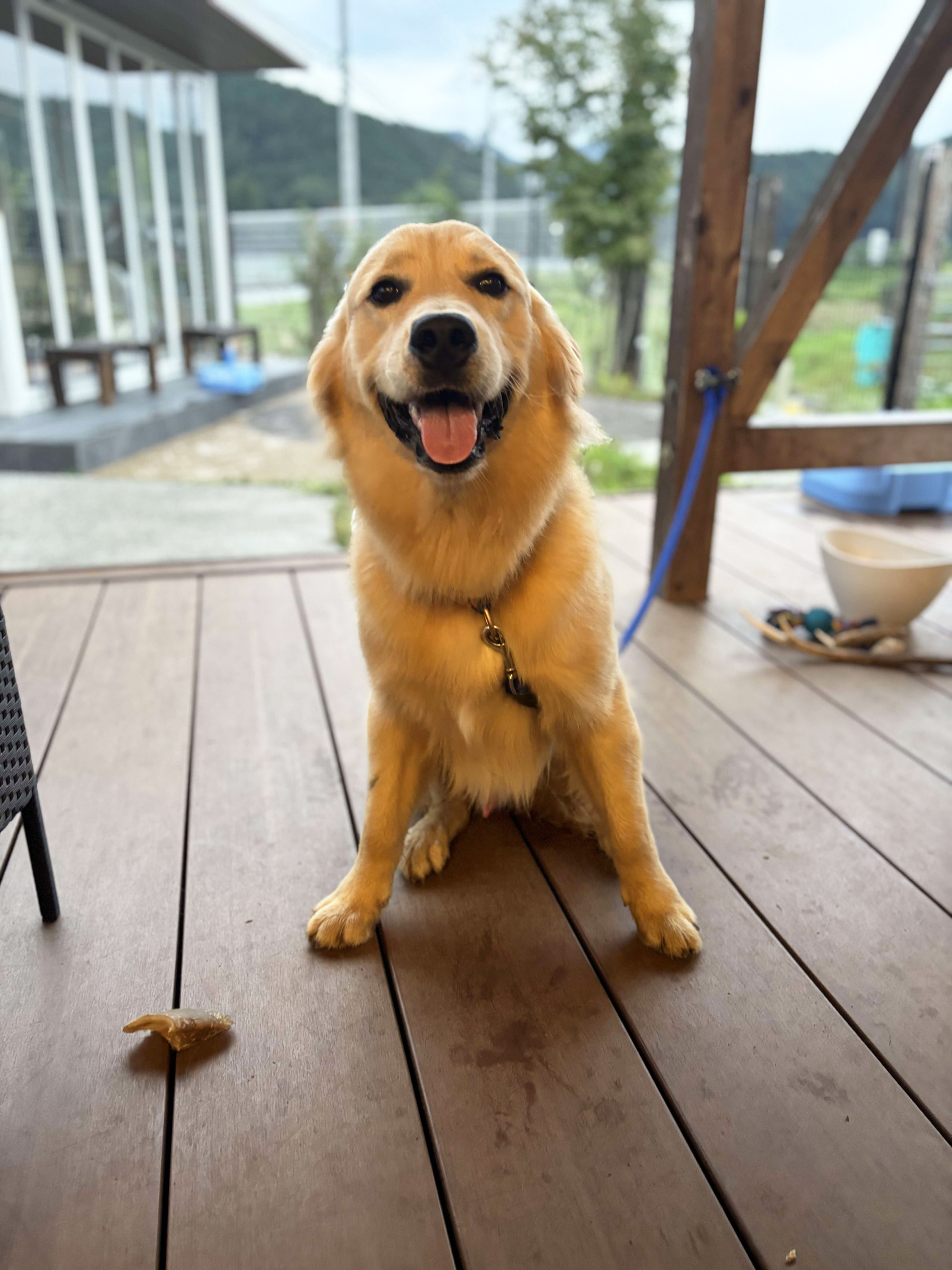 ゴールデンレトリバーのゴンちゃんはとても人懐っこくて、近づくと大きく尻尾を振って喜んでくれます。すぐに懐いてくれるので、ワンちゃん好きの方にはたまらない可愛さがあります。