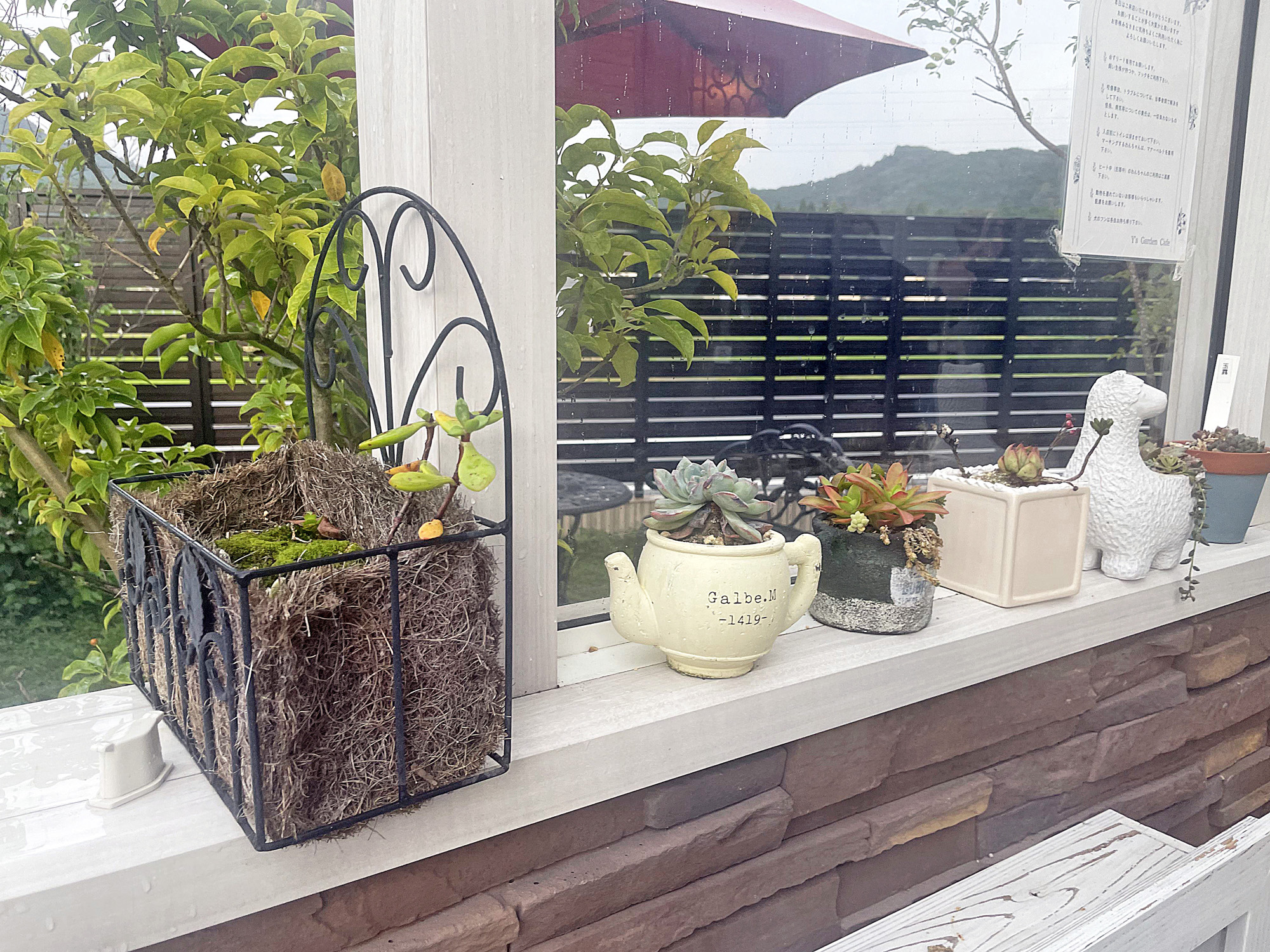 エントランスには可愛らしい多肉植物や小物が置かれ、手入れの行き届いたお庭は、生き生きとした緑であふれています。