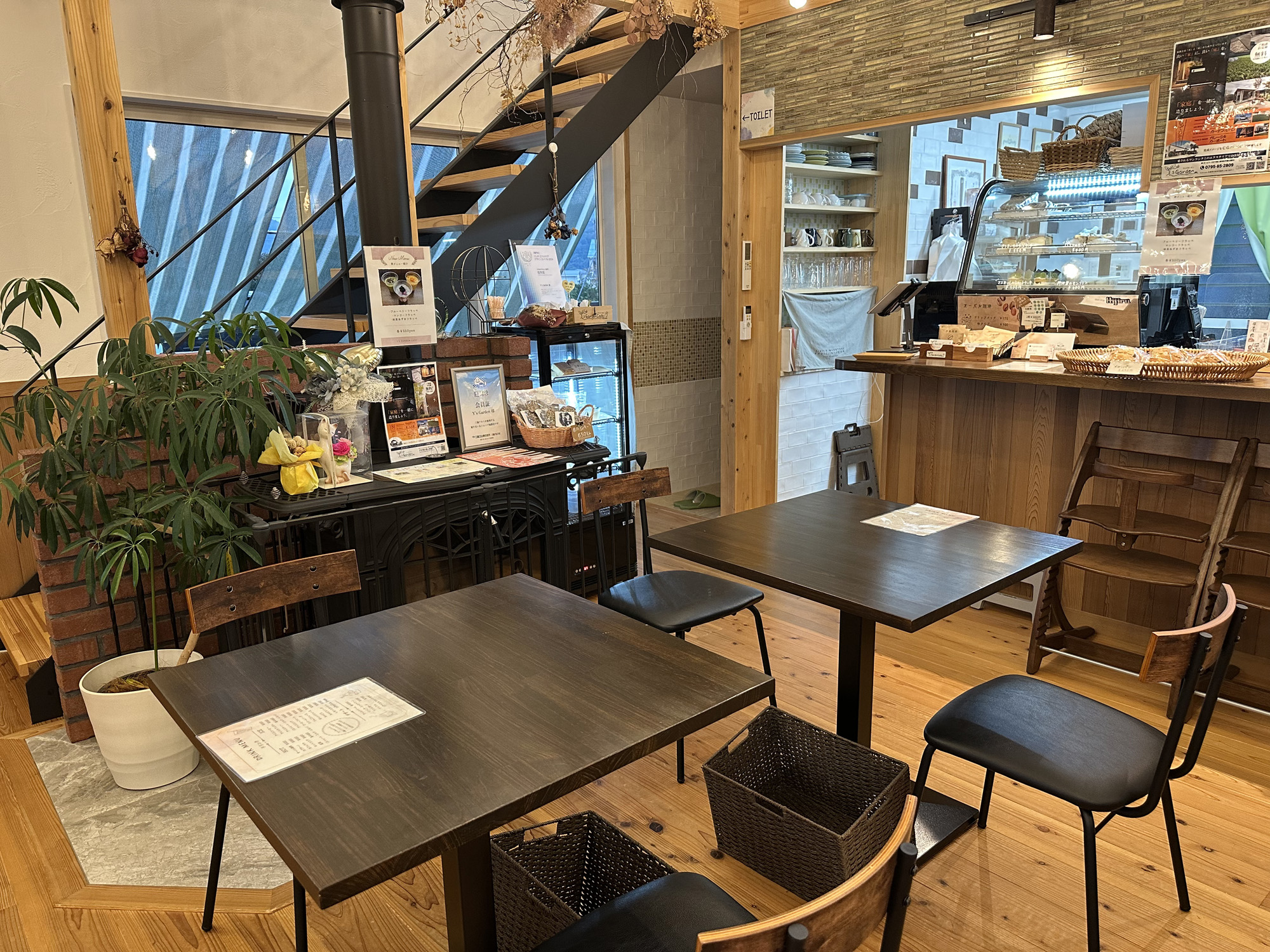 Y’s Garden Cafeは、靴を脱いで上がるスタイルのカフェで、店内は、明るい色を基調とした木のぬくもりを感じられる空間となっています。明るい色の中に映える濃い色の木目調のテーブルや椅子が、統一感のある落ち着いた雰囲気を生み出しています。