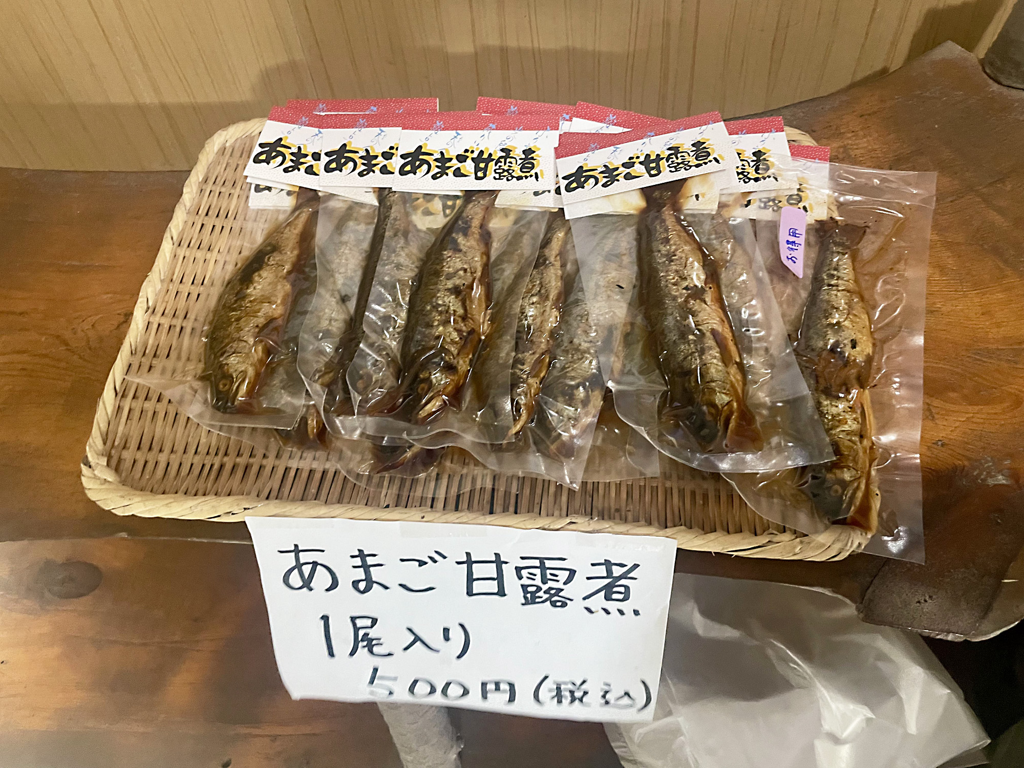 また、ドカンと一尾入ったインパクトある甘露煮(500円[税込])も、お土産としてお求めいただけます。