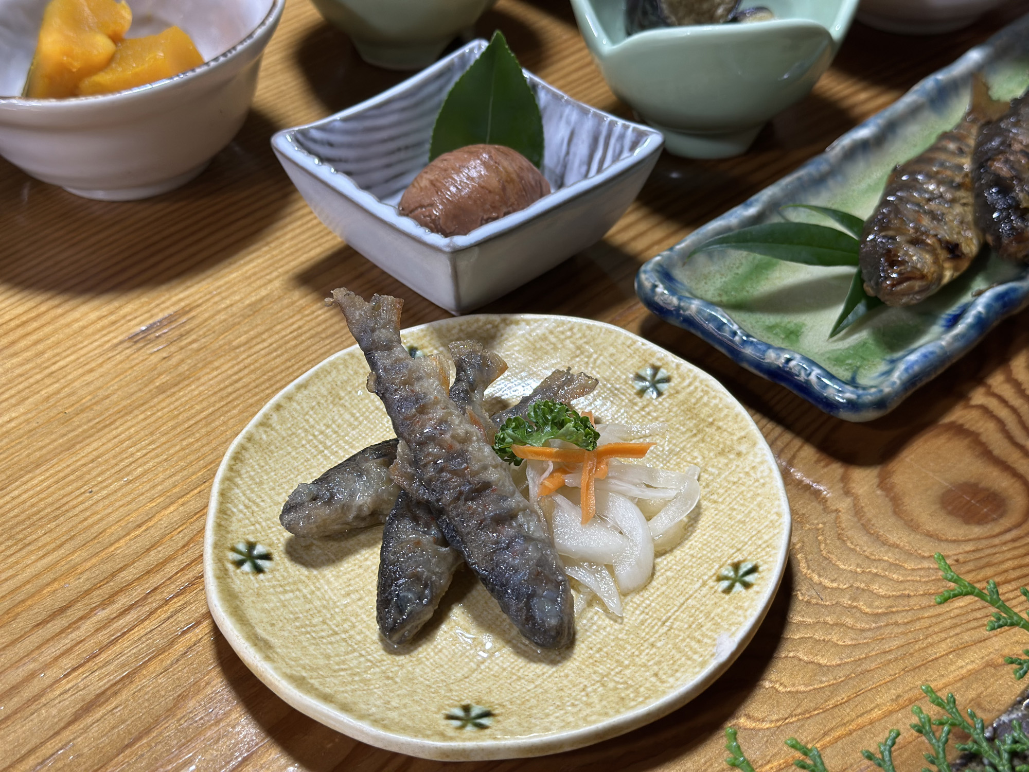 一尾まるごと調理されたあまご料理の数々。