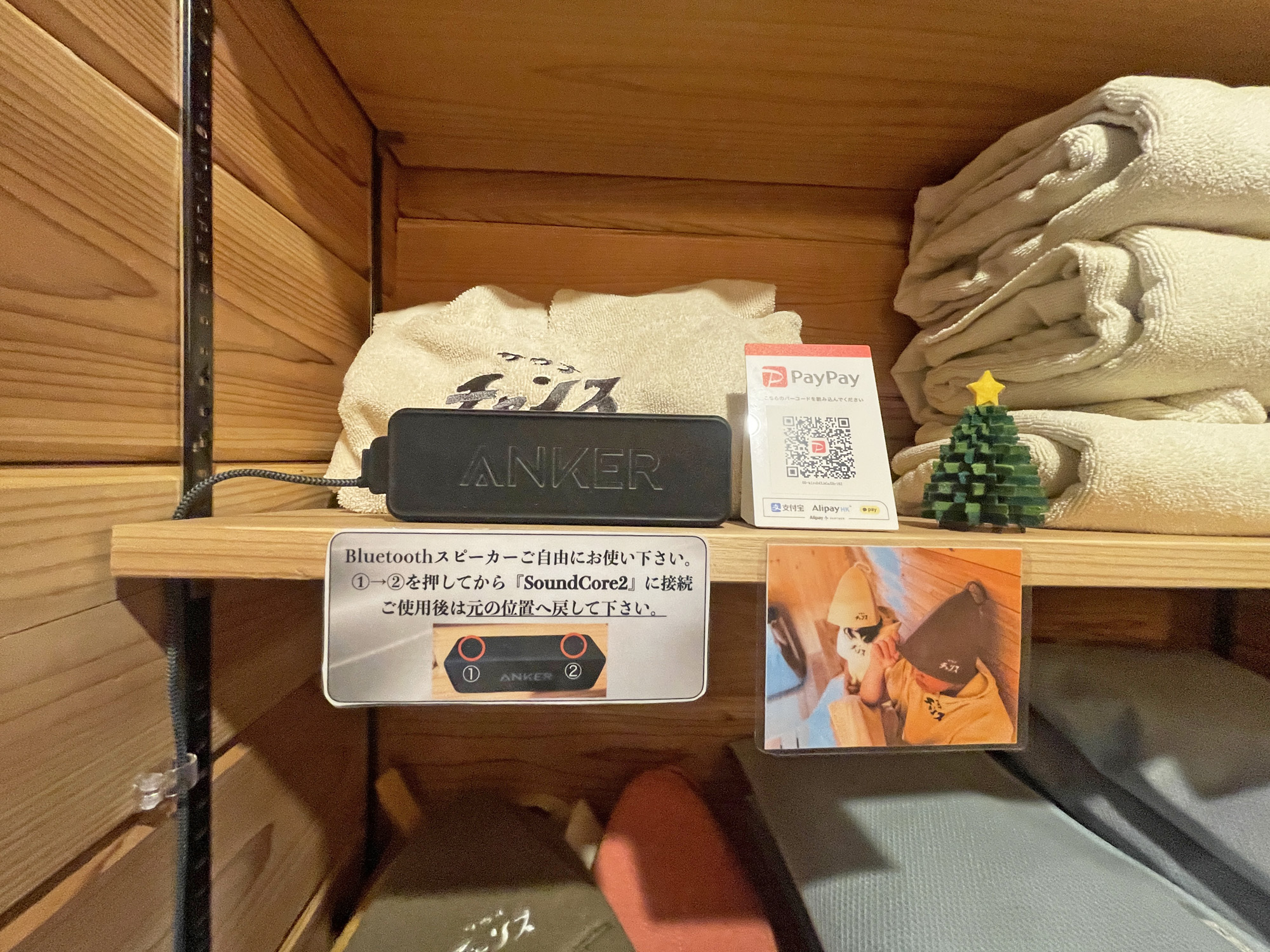 また、サウナ内でお気に入りの音楽を流せるスピーカーの貸出サービス(無料)もあります。
