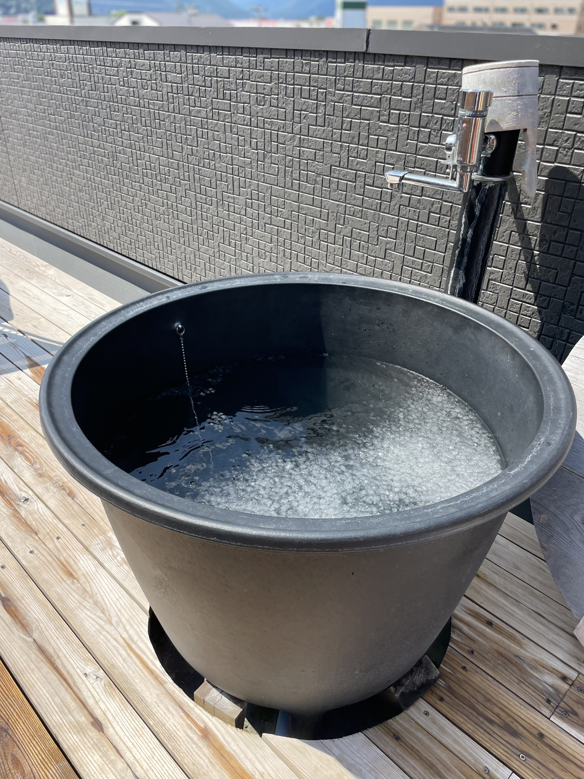 サウナであたたまった後の水風呂は、備え付けの氷を好きなだけ入れて、お好みの水温にカスタマイズが可能です。