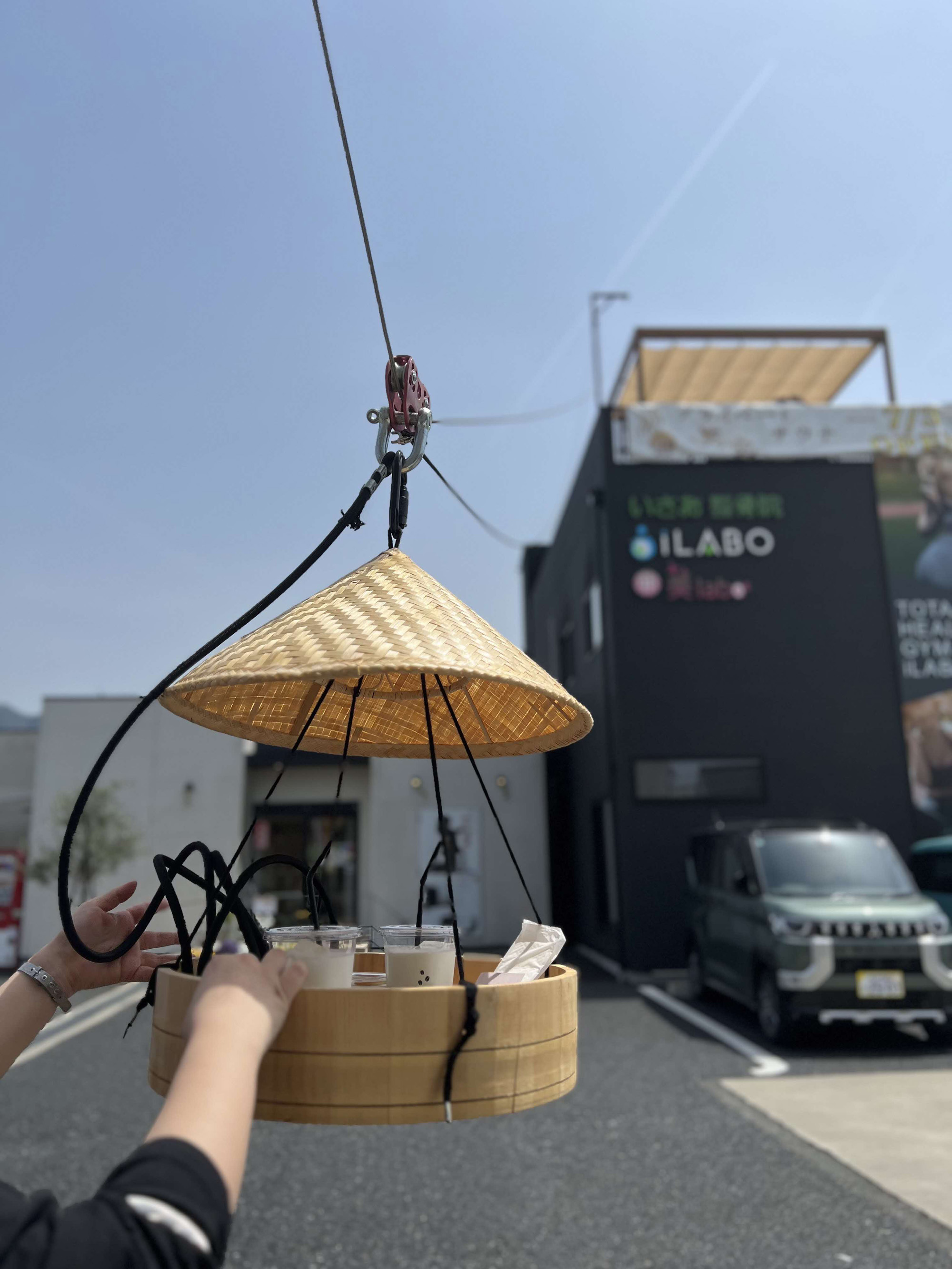 お隣の人気コーヒーショップ「豆labo」から本格コーヒーが届けられる「空飛ぶ宅急便」は、ここでしかできない体験ですので、ぜひご利用ください。