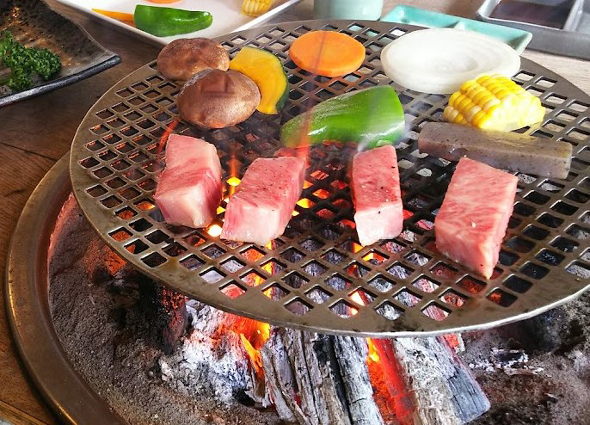 神戸高見牛を使ったメニューは様々ありますが、他店でお目にかかれないような卓上の「炭」で焼く「あみ焼き」をご紹介します。