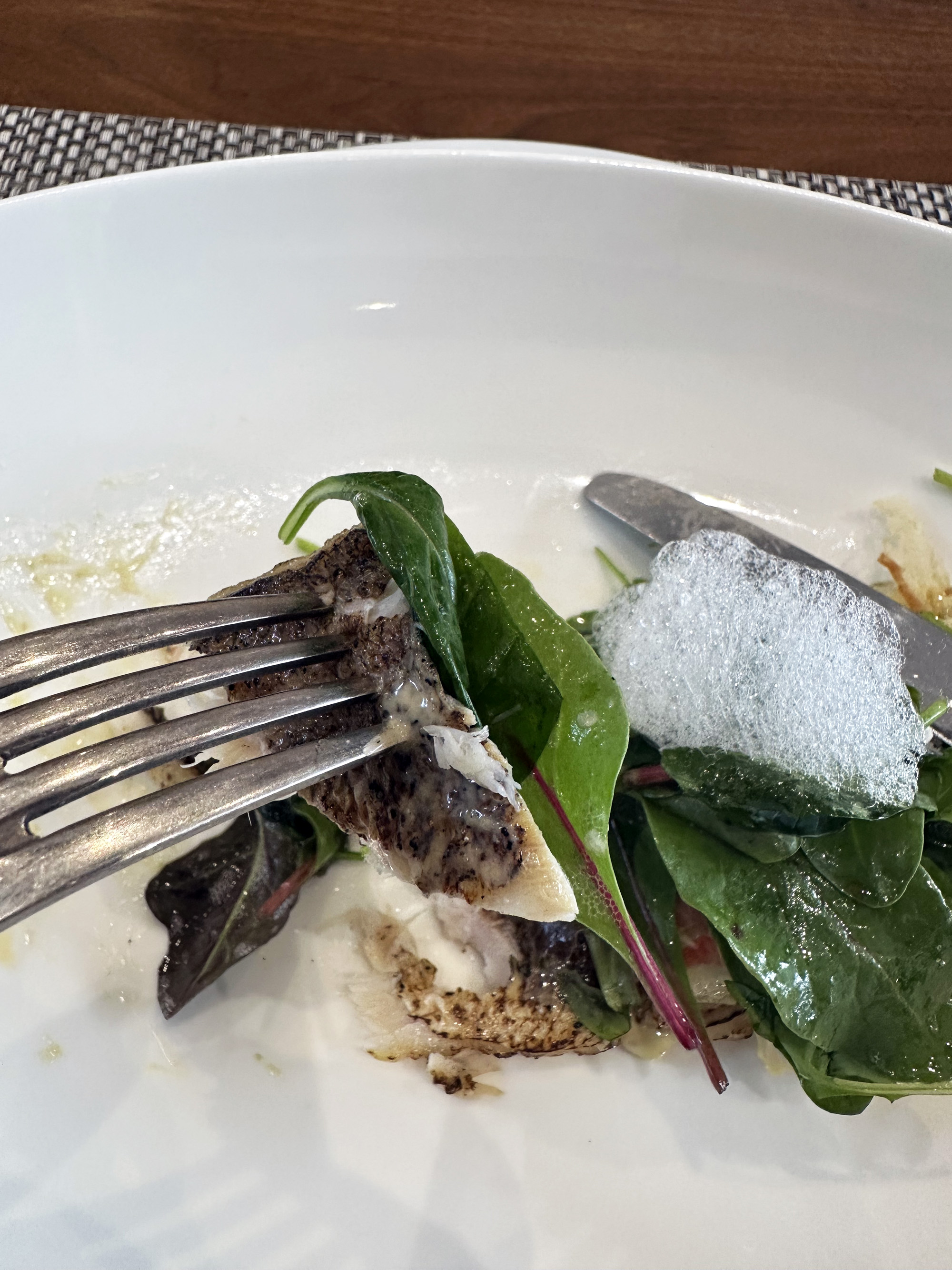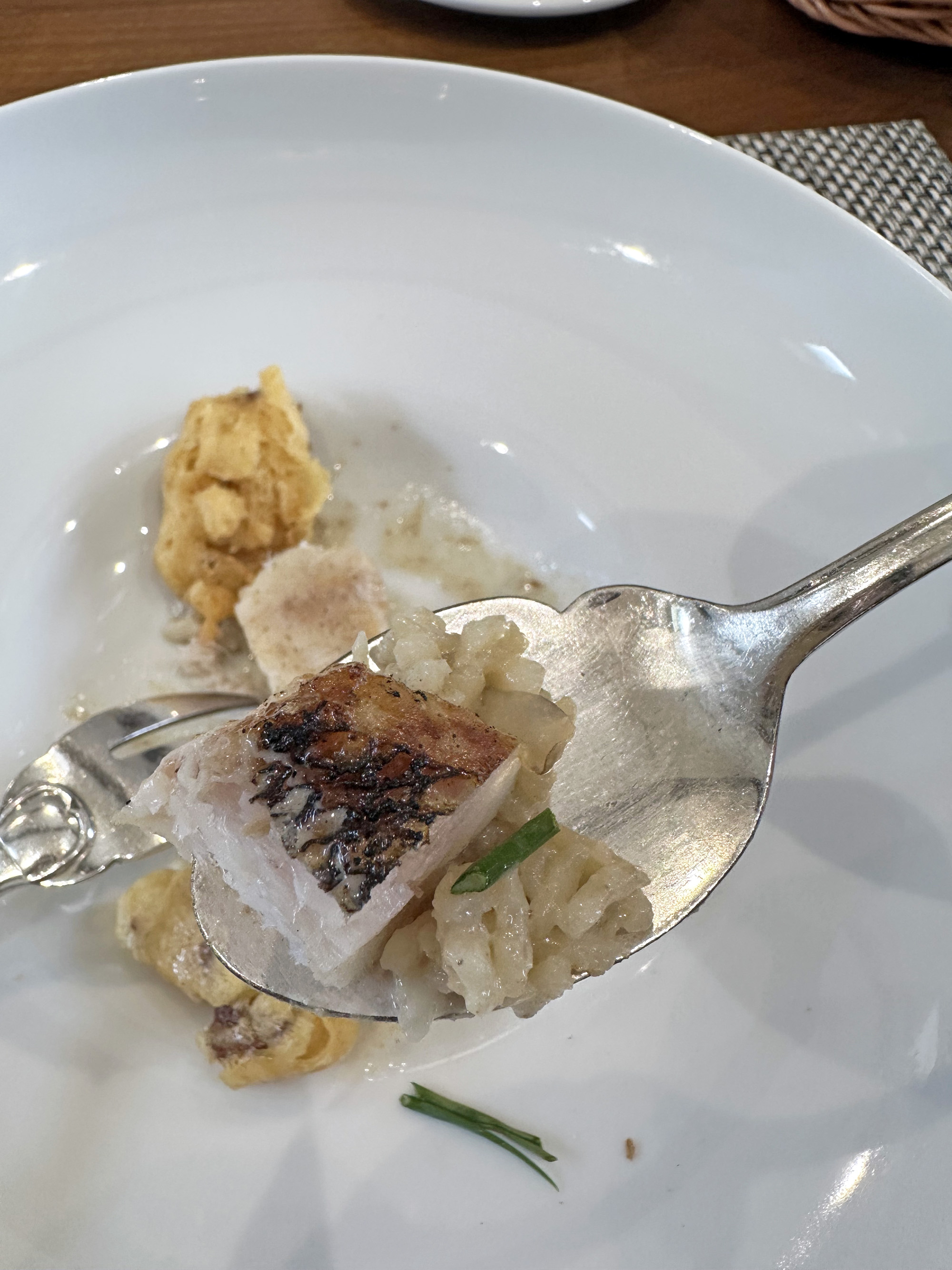 厚みのある鯛はスプーンで簡単にほぐれるほど柔らかく、皮目はパリパリでちょうどいい塩加減。