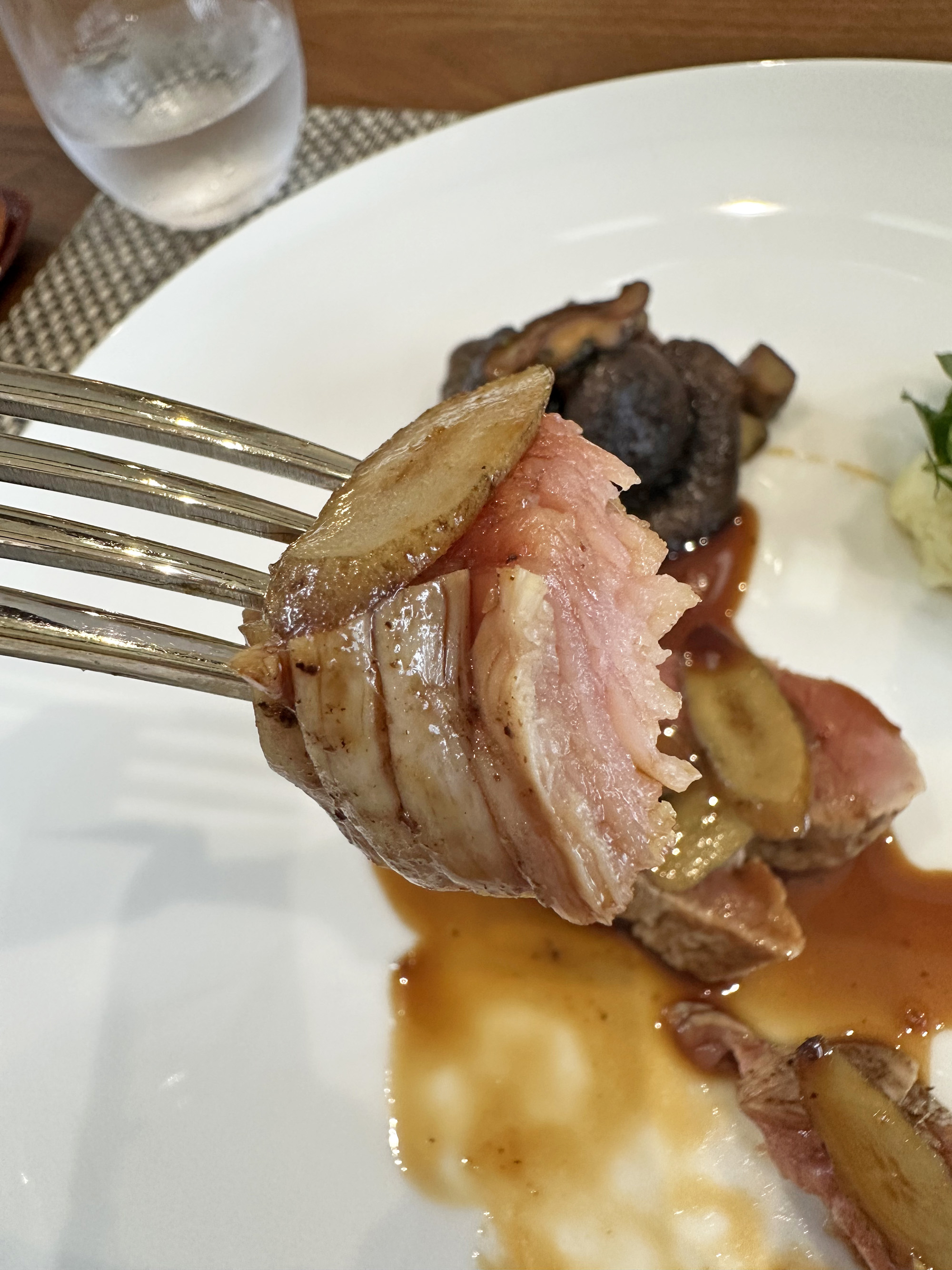 少しレアな焼き加減の仔牛肉の断面はキレイなピンク色で、ほどよい弾力があり、噛めば噛むほど旨味が出てきます。