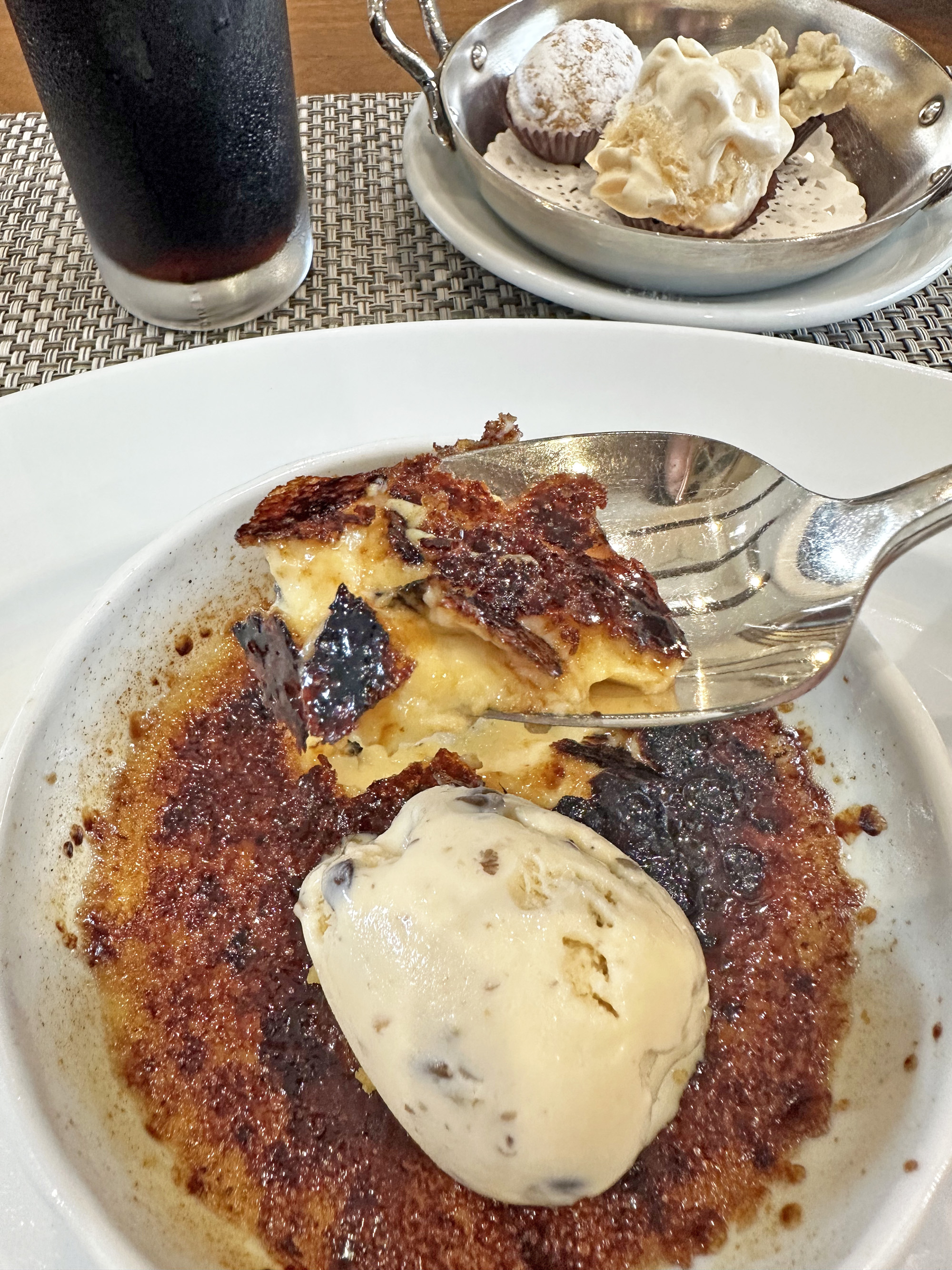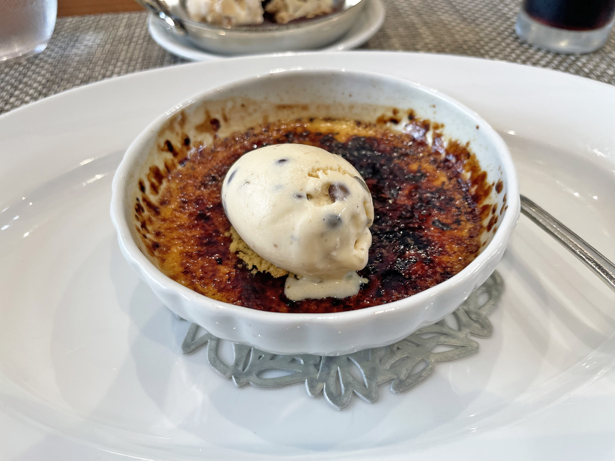 また、クレームブリュレと一緒に食べると、ほろ苦いキャラメリゼが、やさしい甘さのカスタードやアイスでまろやかな味わいになり、口の中全体にやさしい甘さが広がります。