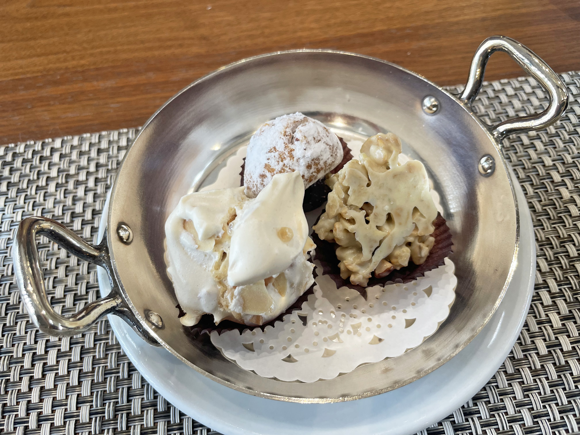 ムランゲ(メレンゲ)やクッキーなどが可愛い銀色のお皿に盛りつけられており、いずれもザクザクとした食感を楽しむことができます。