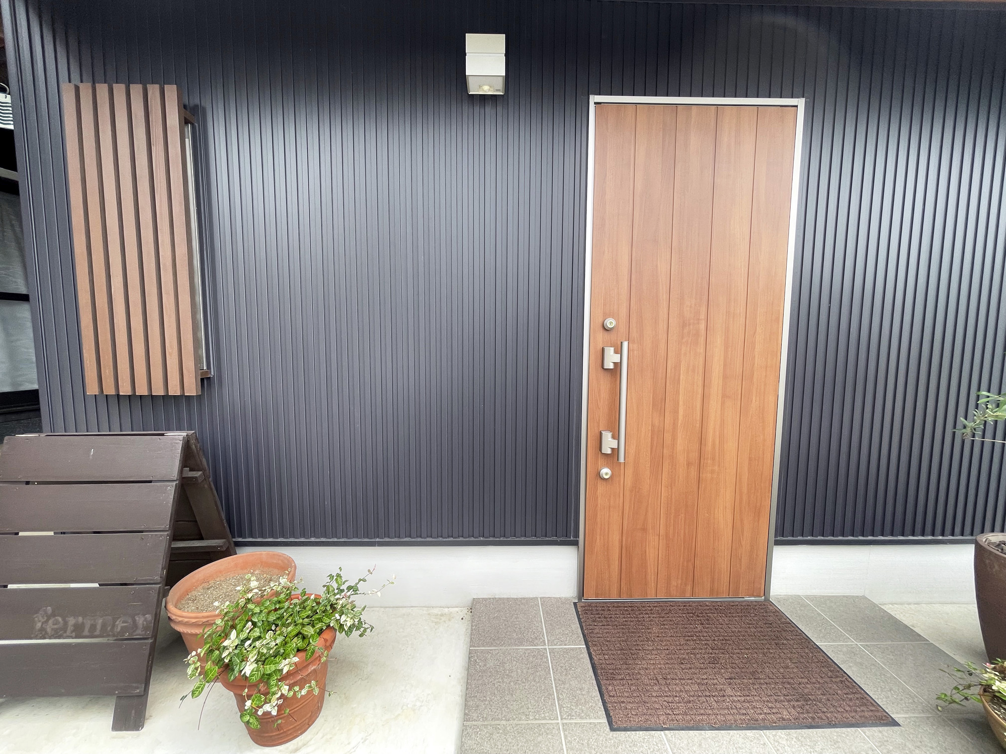 朽ち木がおしゃれな、茶色い看板が目印です。
