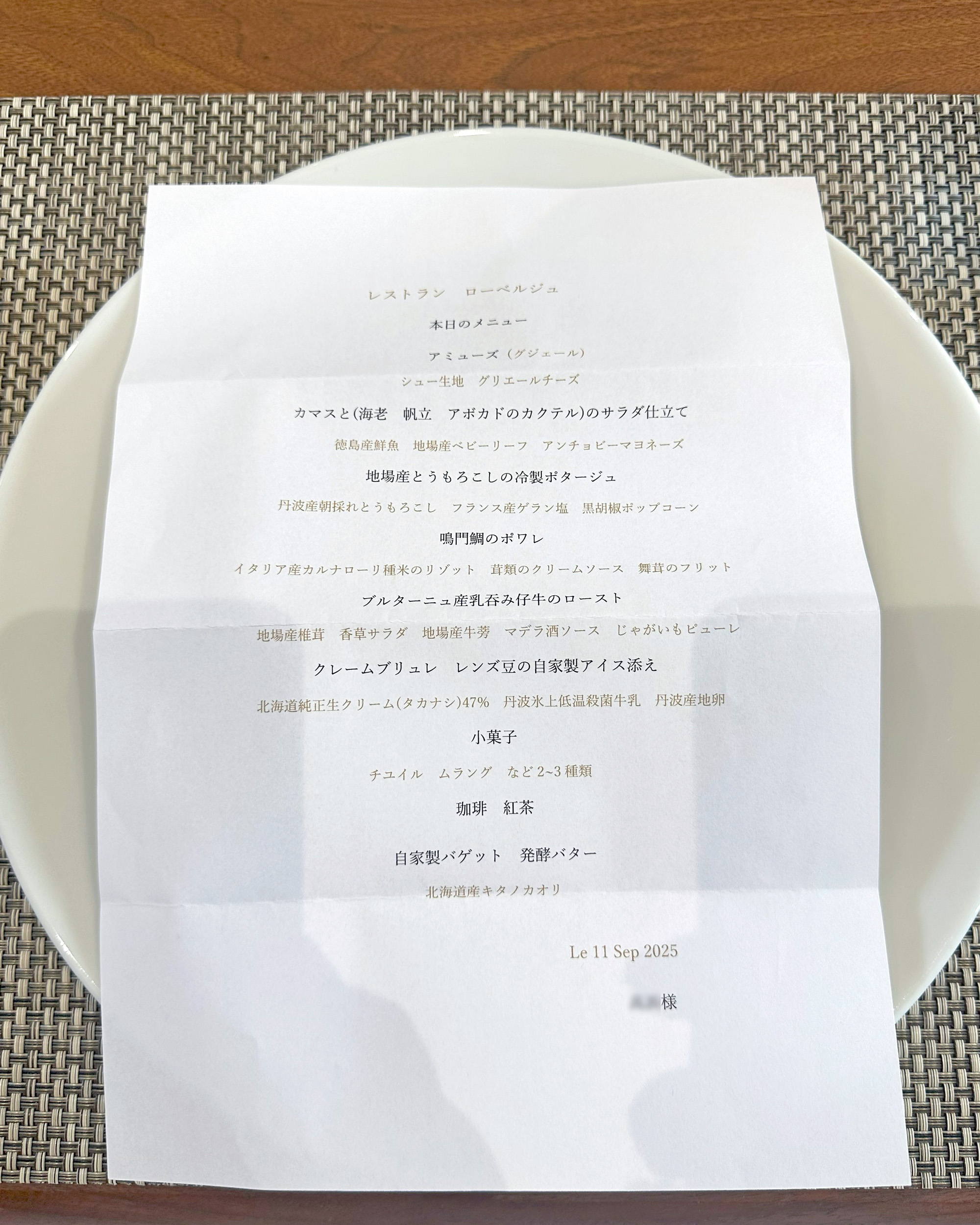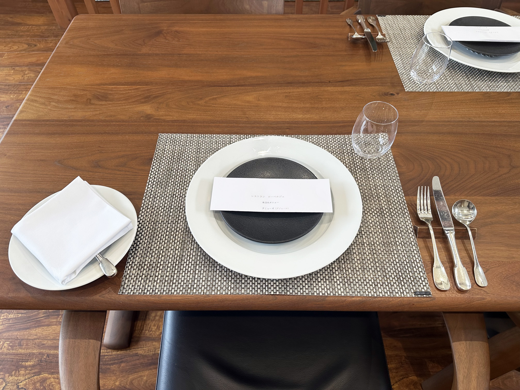 テーブルセットには本日のメニューが添えられていて、そのメニューには予約者の名前が記されていて、自分の為に用意された料理への特別感と期待感に心が高鳴ります。